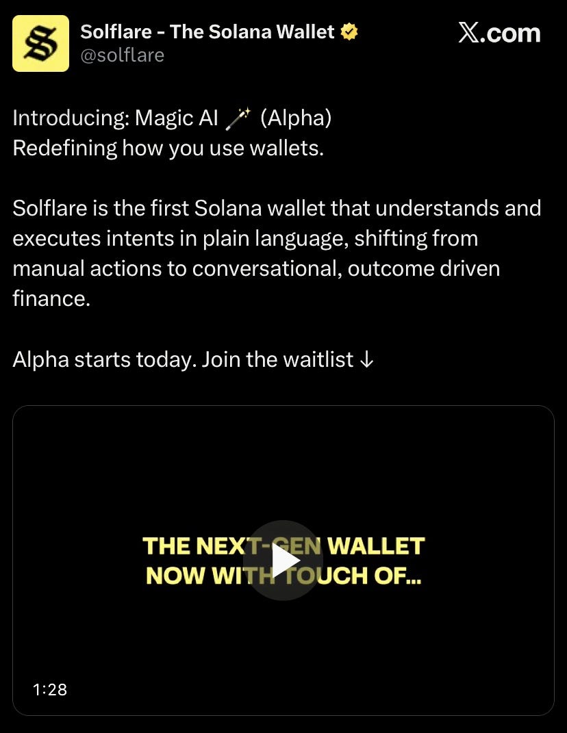Solana wallet, Solflare launched Magic AI, an interface to interact with your wallet in plain language commands