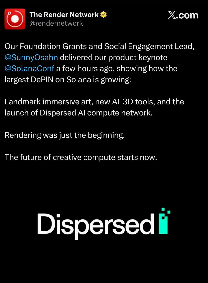 Render Network launched Dispersed, a decentralized GPU compute platform aggregating thousands of GPUs to address AI compute shortage