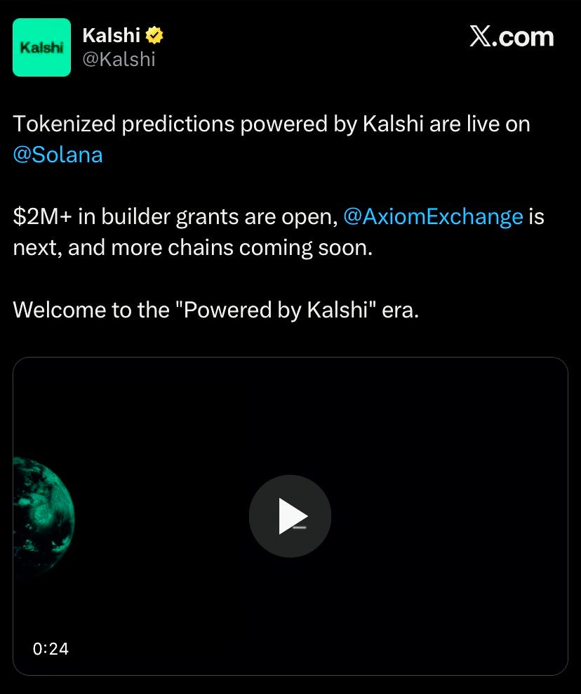 Predictions Marketplace, Kalshi prediction markets can now be tokenized on Solana. Today, they raised $1 billion at $11 billion valuation