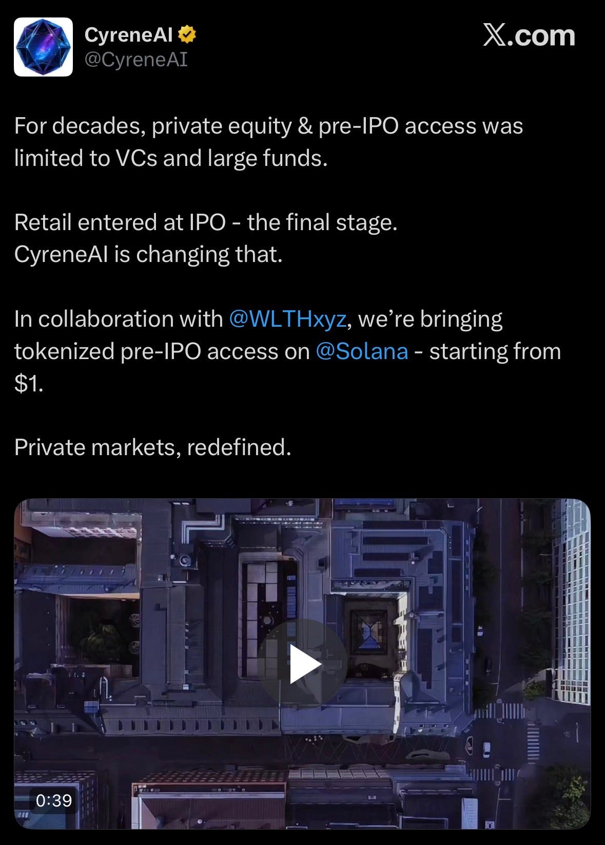 Cyrene AI, in partnership with WLTH, is enabling retail investors to access tokenized pre-IPO opportunities on Solana.
