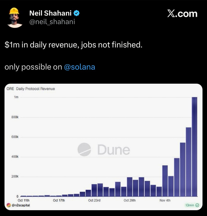 OREsupply, a PoW protocol on Solana, hit a record $1M in daily revenue.