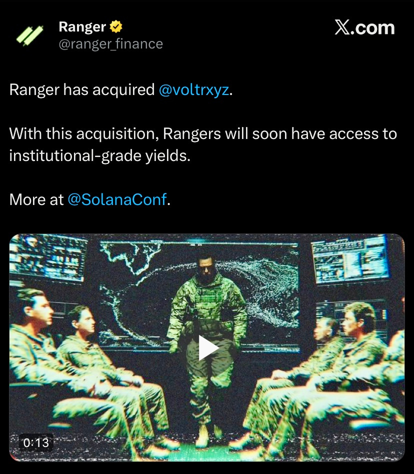 Ranger Finance acquired Voltr to integrate advanced yield strategies and deliver institutional-grade returns on Solana.