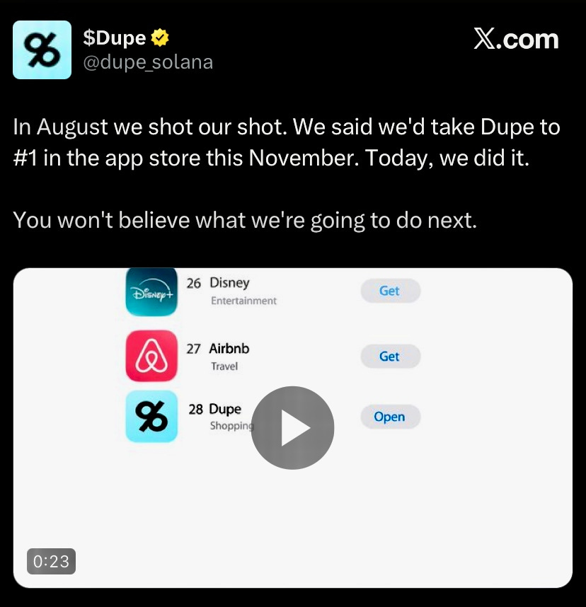 AI Shopping marketplace, Dupe becomes the number one shopping app on AppStore USA