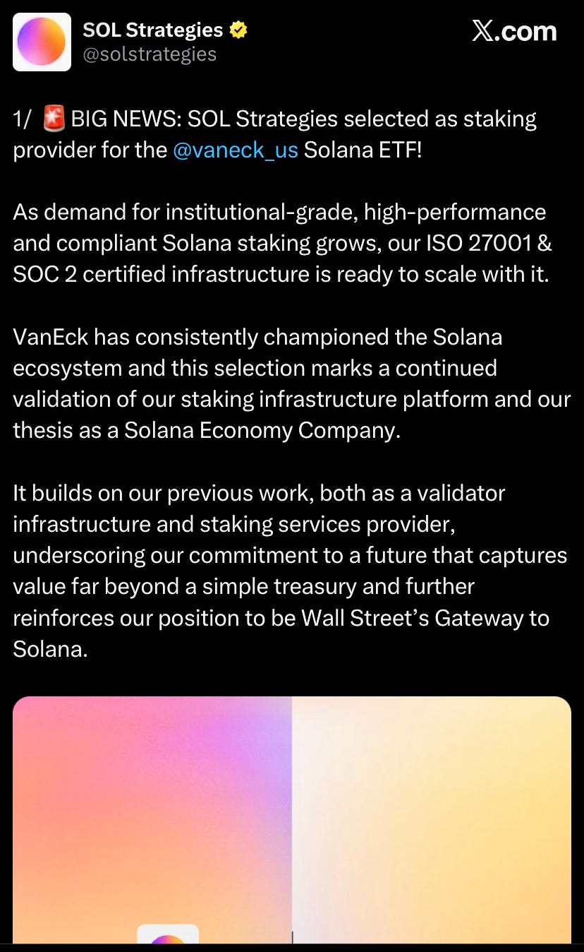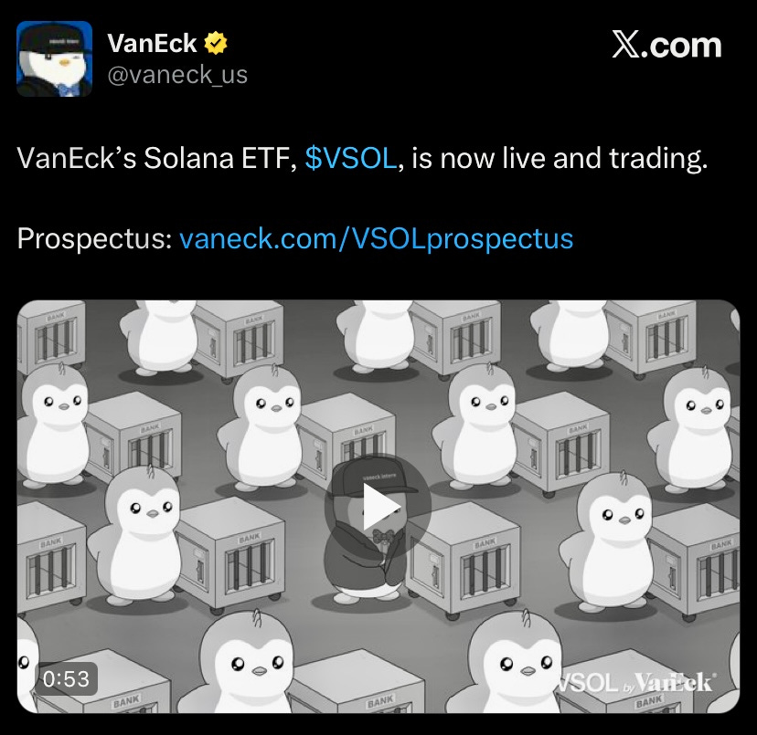 Vaneck Solana ETF, VSOL, went live for trading with $7.32 in seeding, the selected Sol strategies as the staking provider for its Sol ETF