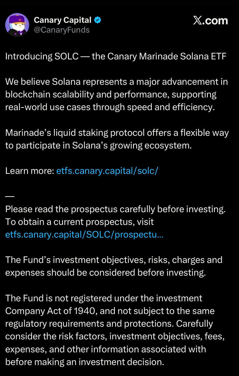 NYSE Arca approved the listing and registration of Canary Marinade Solana ETF