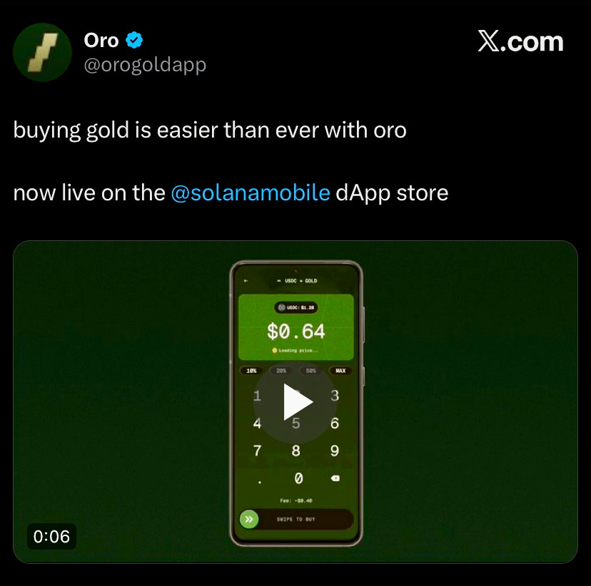Oro Gold app launched its app on Solana mobile enabling users to trade and stake tokenized golds