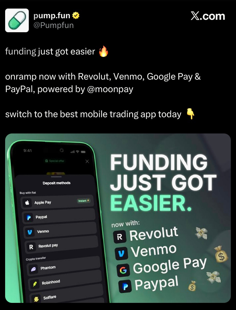 Pumpfun integrated moonpay into its mobile app