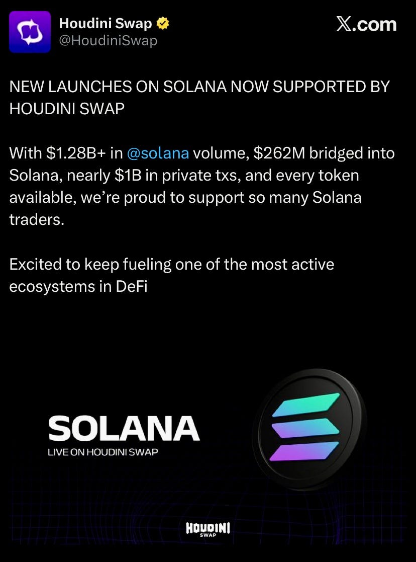 Users can now trade new Solana launches directly on Houdini Swap by simply pasting contract addresses into their search bar. Their advanced onchain aggregator makes it easy to ape into new launches while maintaining privacy