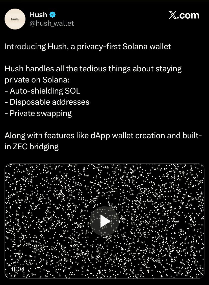 Solana privacy first wallet, Hush wallet to go live in coming days enabling in built Zec bridging