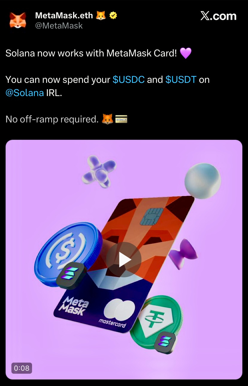 MetaMask card introduced support for USDT and USDC on Solana