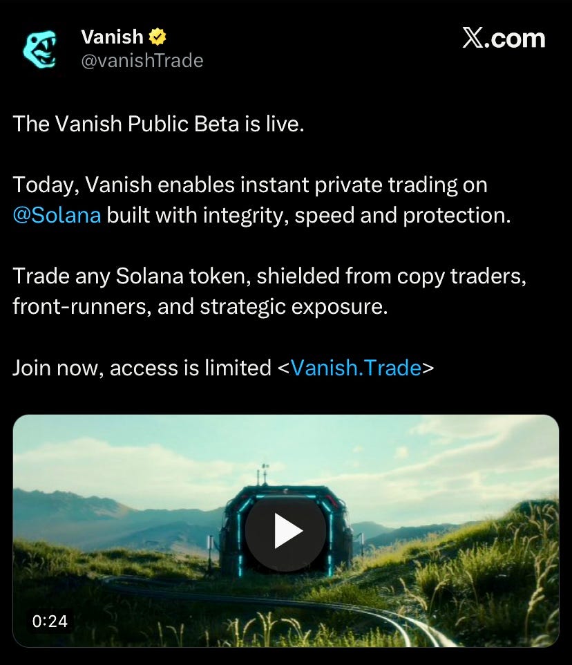 Vanish Trade launched public beta to advance private trading on Solana preventing anyone from copy trading or front running traders