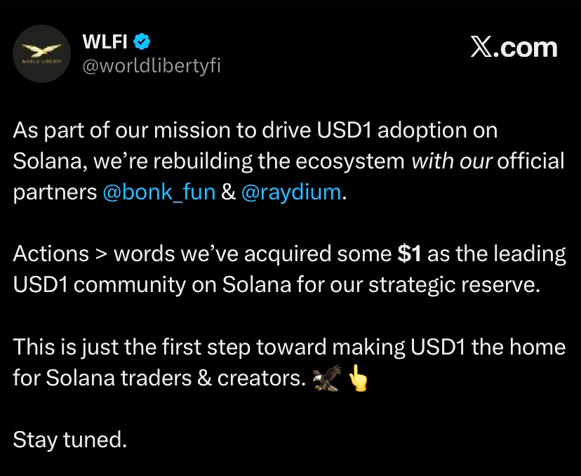 Liberty Financial announced partnership with Bonk and Raydium to drive USD1 adoption