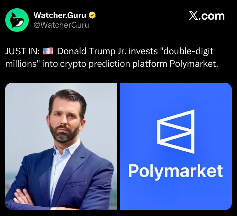 Donald Trump Jr venture capital 1789 Capital invested “double digit millions” in polymarket
