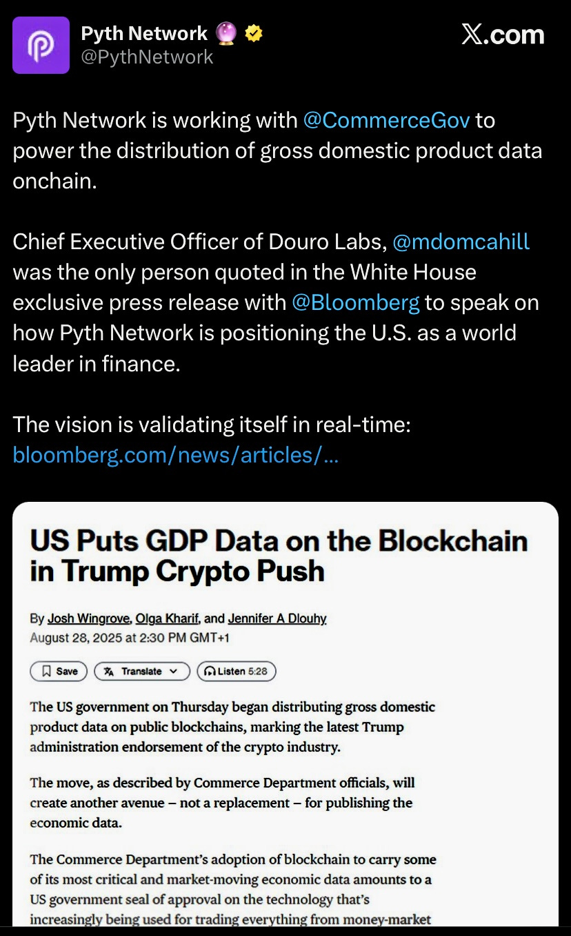 US Department of Commerce selected Pyth Network as the solution for onchain verification and distribution of economic data