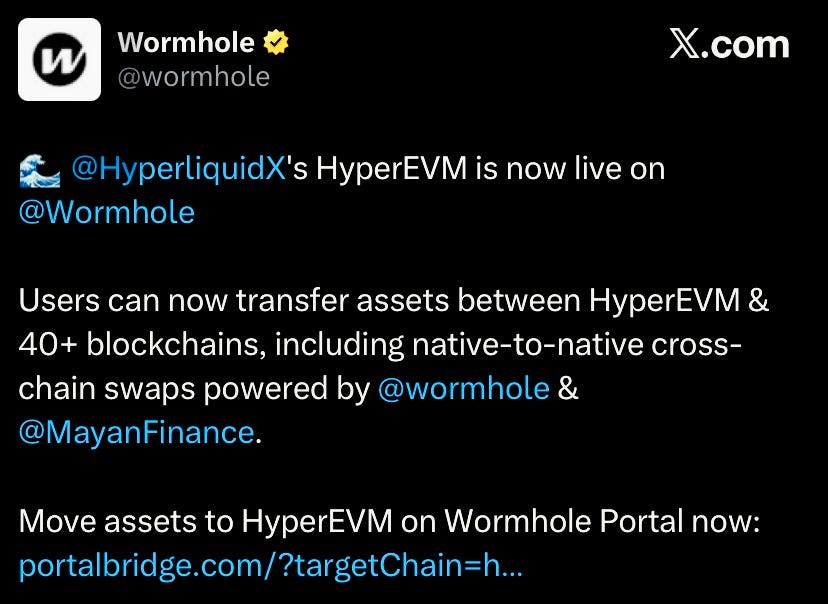 Wormhole goes live on Hyperliquid HyperEVM enabling cross chain swaps via Portal Earn