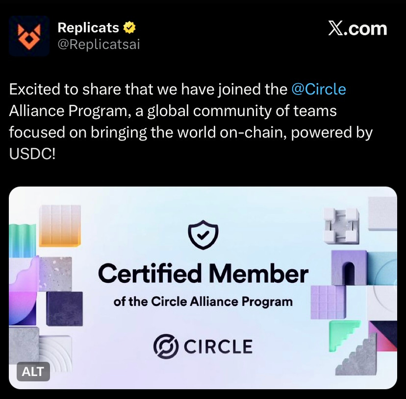 Institutional portfolio management, Replicats joined Circle Alliance Program. Token RCAT 10xs