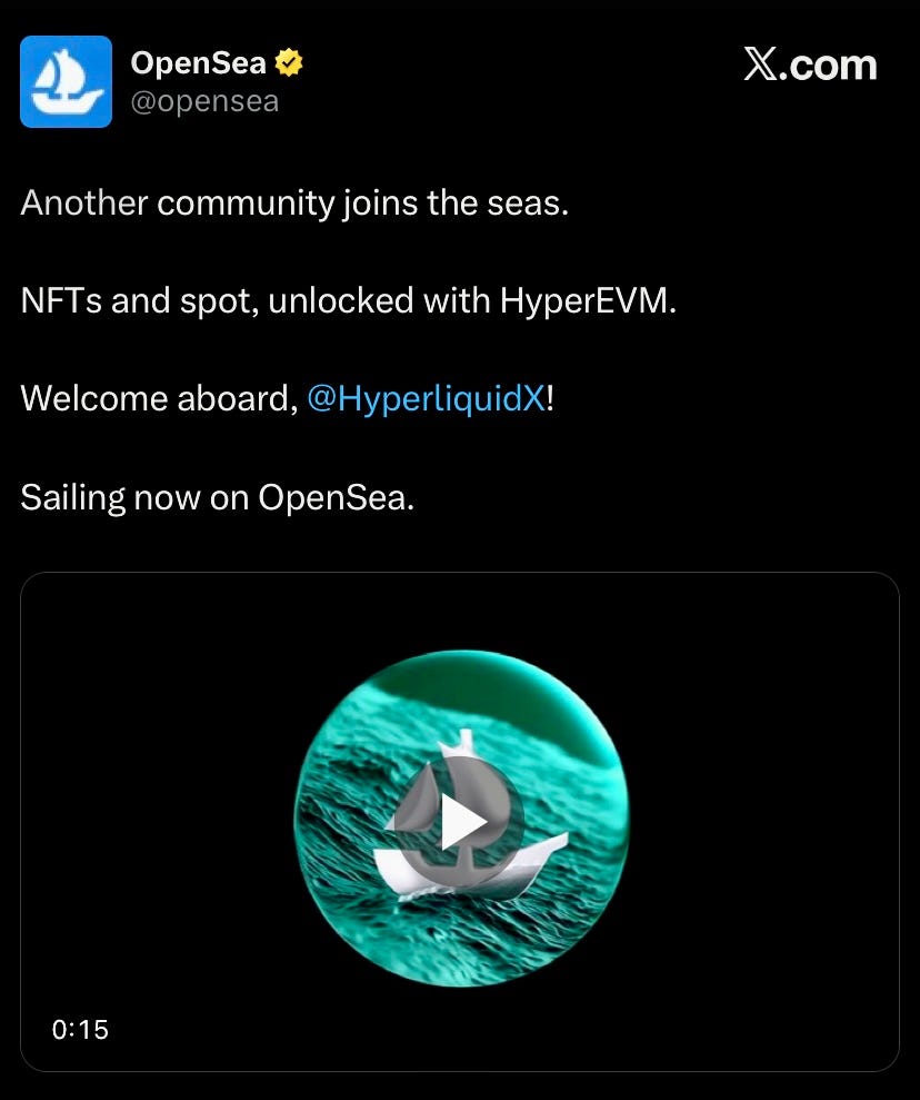 OpenSea joins and goes live Hyperliquid HyperEVM