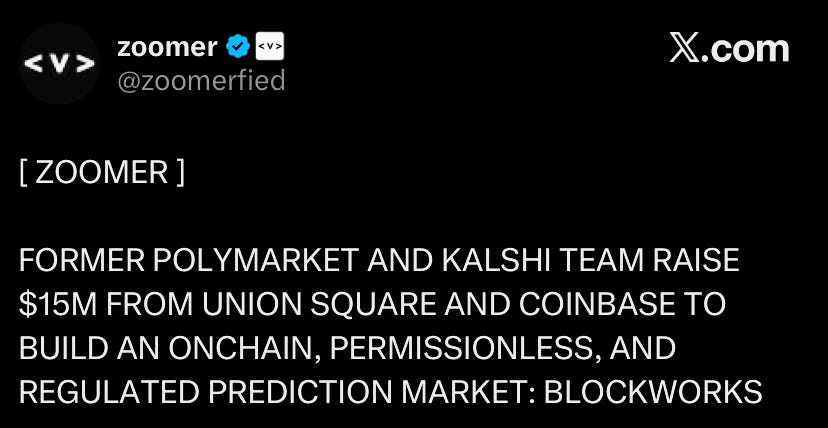 Former Polymarket & Kalshi team raises $15M from Union Square and Coinbase for regulated, onchain prediction market.