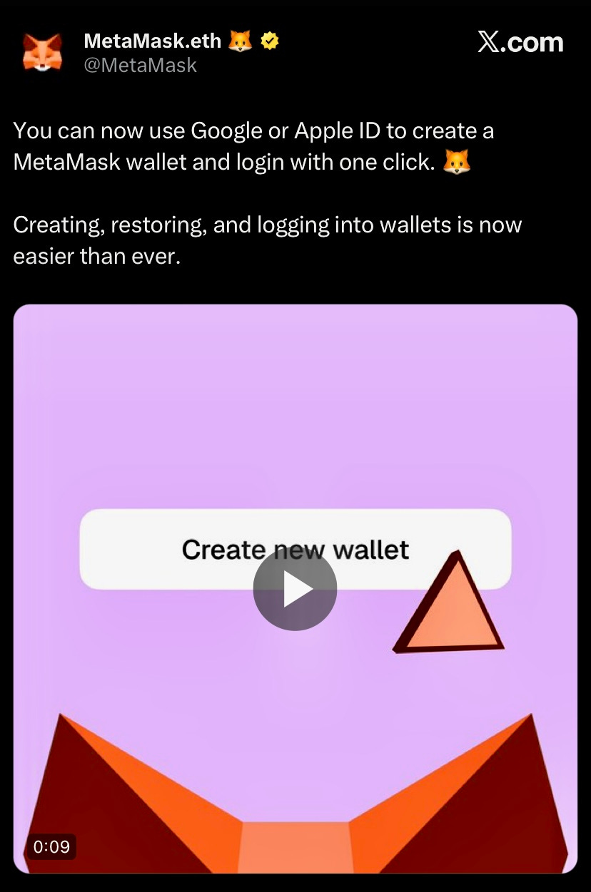 MetaMask now lets users create a wallet using your Google or Apple ID