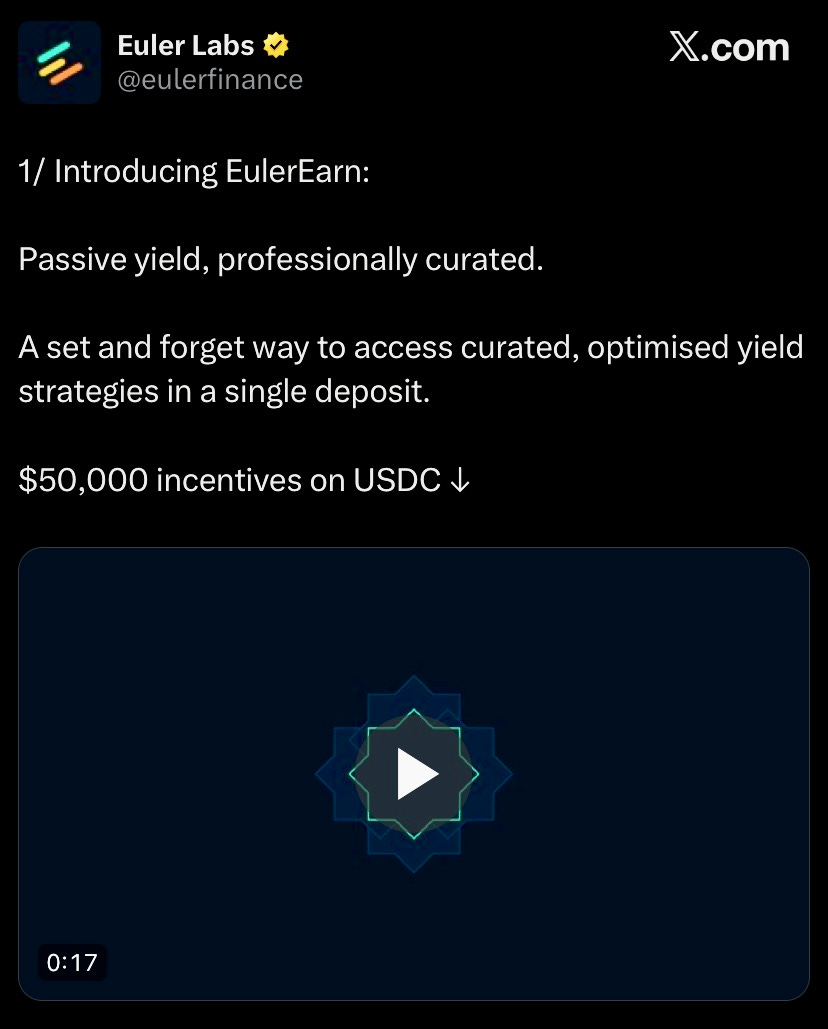 EulerFinance launches EulerEarn: single-asset vaults that autoallocate deposits across curated strategies for passive yield