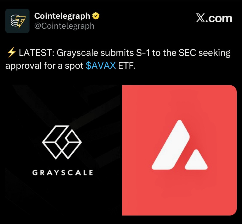 Grayscale submitted S1 filing to convert their Avalanche Trust into a publicly traded spot AVAX ETF to be listed on Nasdaq