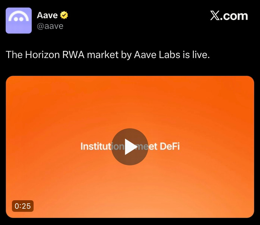 Aave announced Horizon, new lending market where institutions borrow stablecoins against RWAs