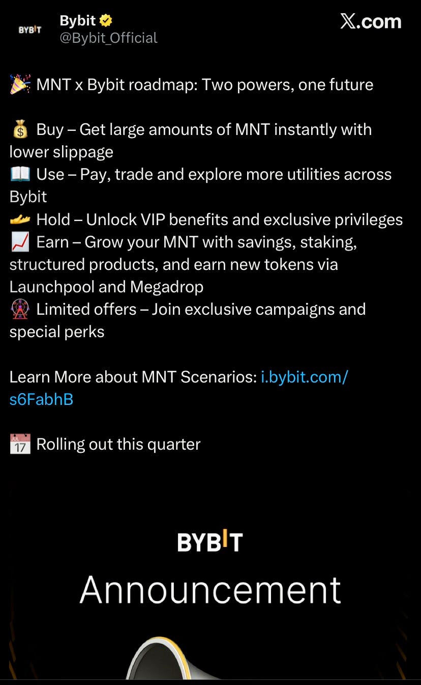 Bybit announced: Bybit X Mantle (MNT) airdrop