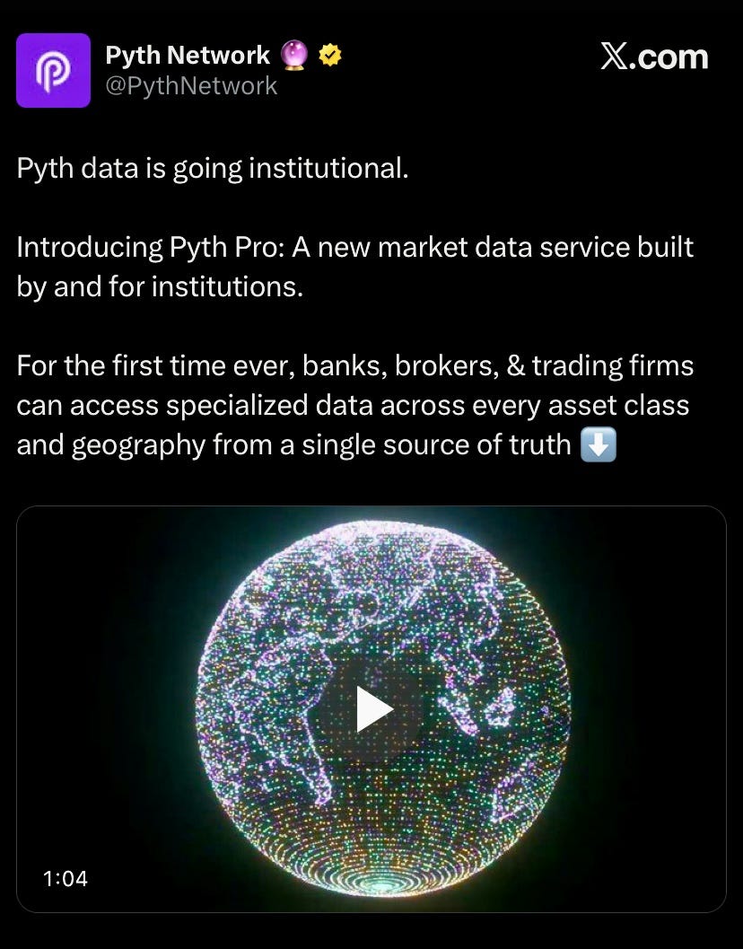 Pyth rolled out Pyth pro, a single subscription delivering 2,000+ feeds (crypto, equities, futures, ETFs, FX, commodities, fixed income) with <100ms latency, <1.4bps accuracy, and real time price discovery