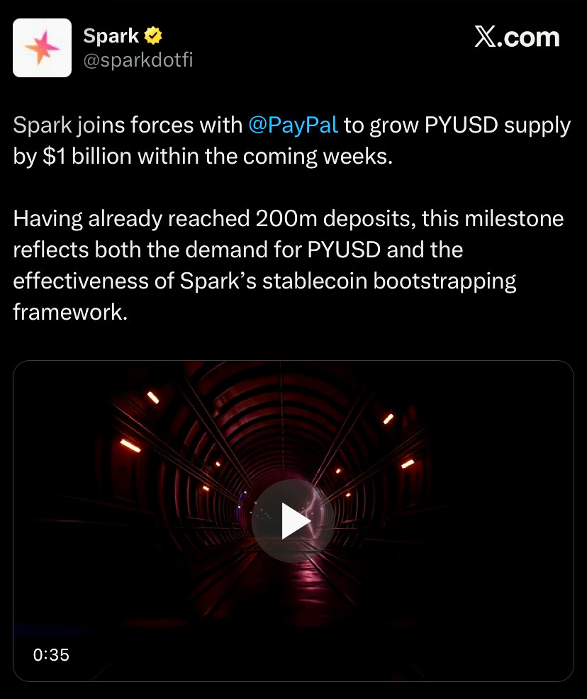 Spark is partnering with PayPal to increase PYUSD supply by $1 billion within coming weeks