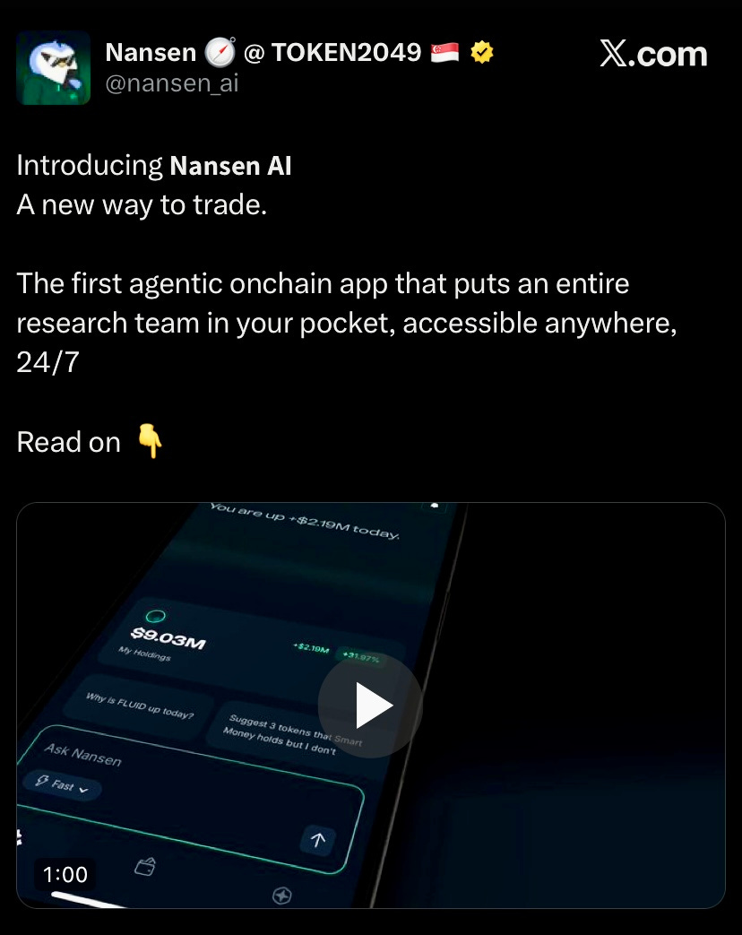 Nansen released Nansen AI, an agentic onchain mobile app for data