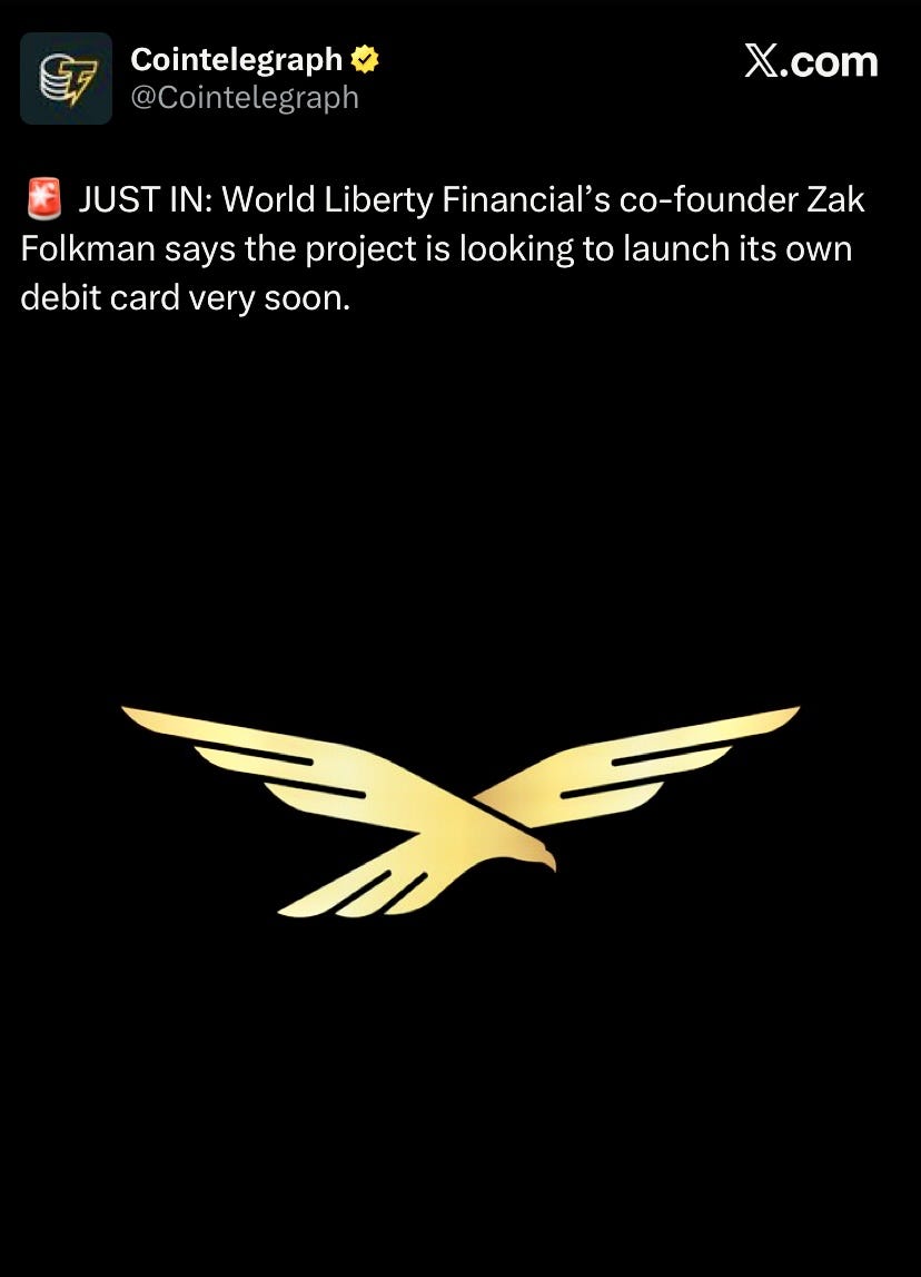 World Liberty Financial to launch its debit card very soon according to co founder Zak Folkman