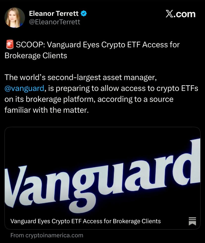 Vanguard is preparing to let clients access select crypto ETFs on their platform